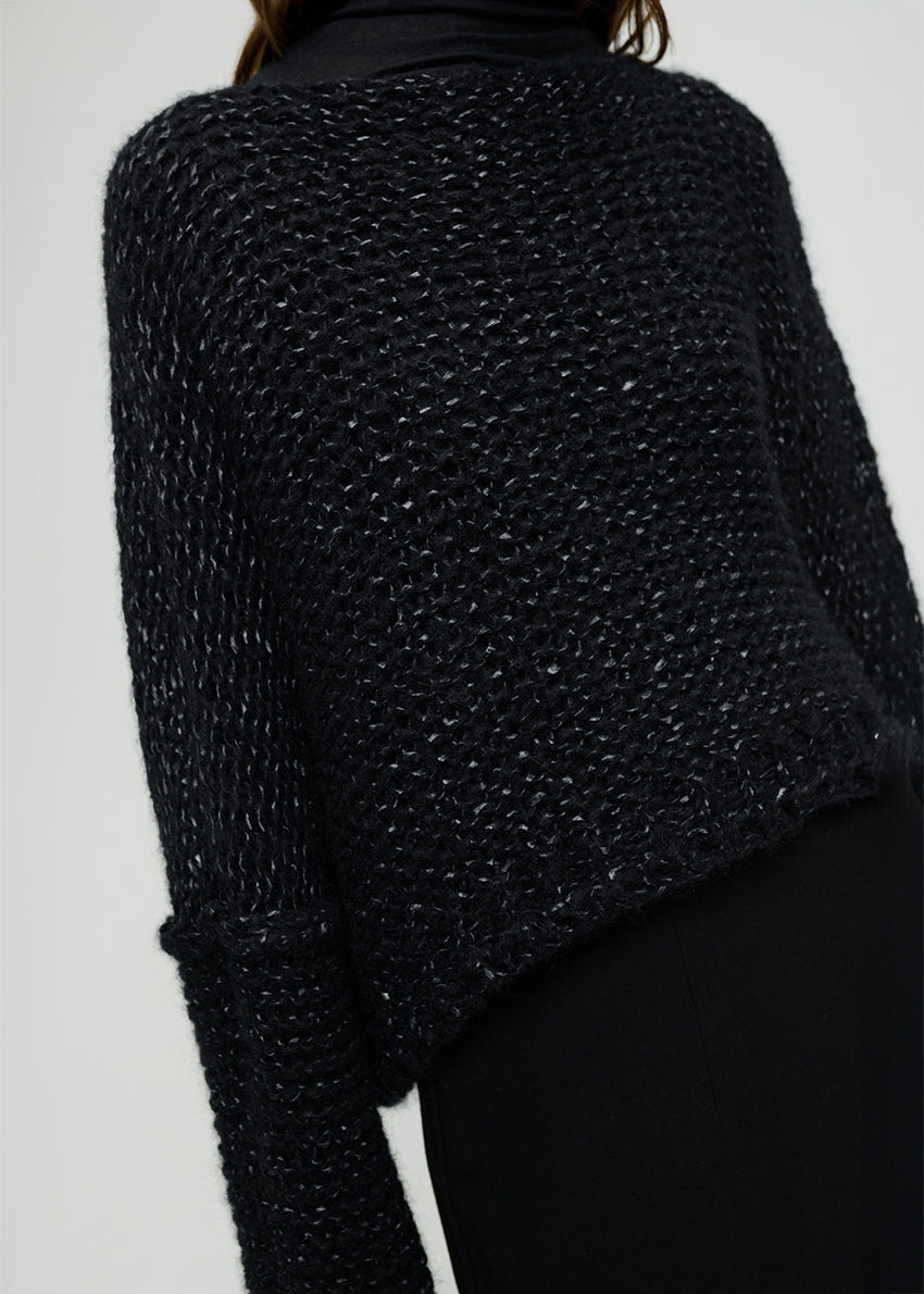 Short, loose-fitting, long-sleeve fully fashioned knitted top, made of a wool blend yarn, with a crew neckline.Match it with the same style and color Kilt.