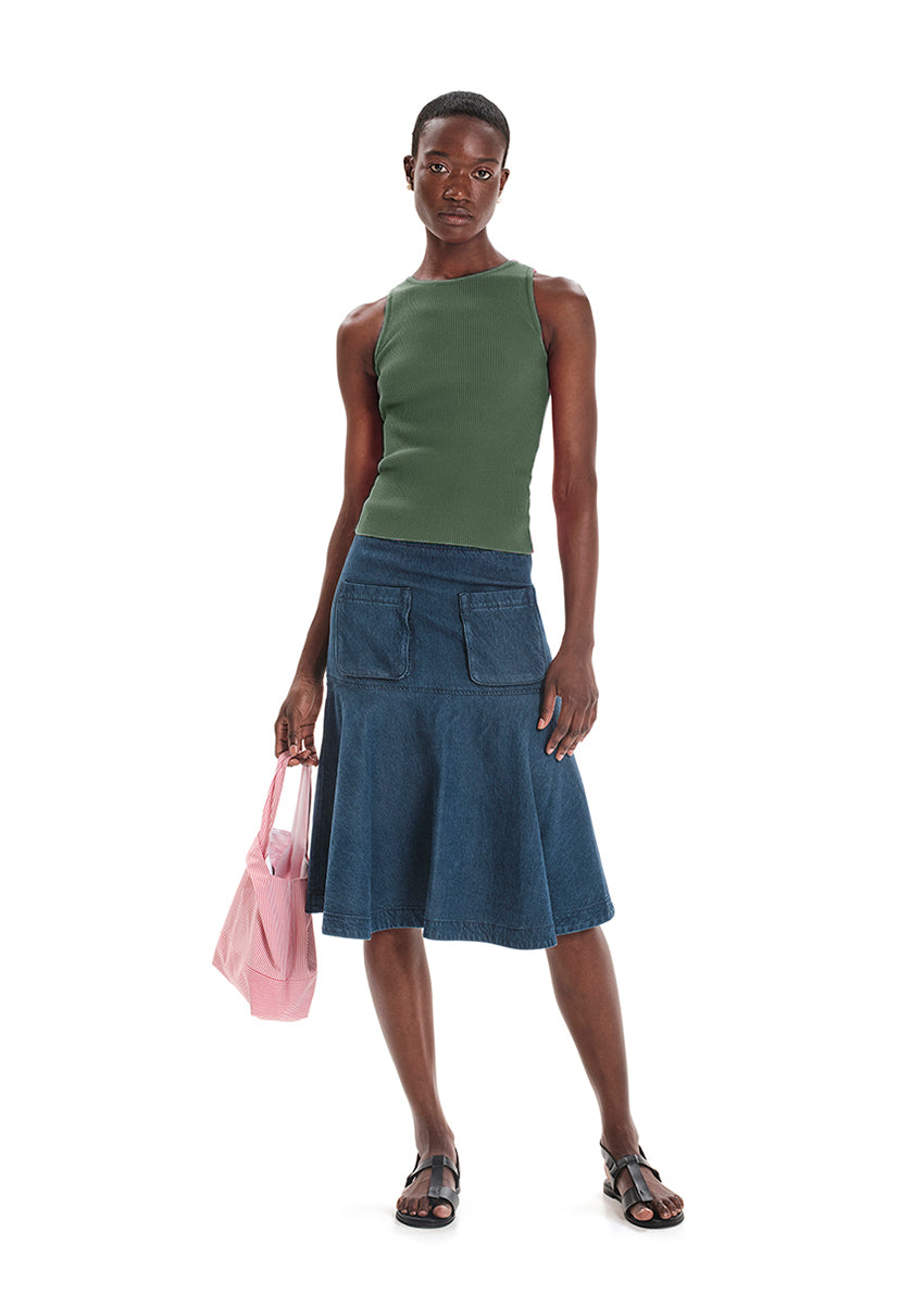 Midi skirt with front patch pockets made of cotton and lyocell blend with a denim look.