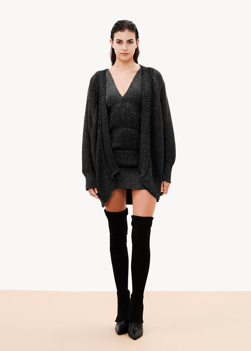 An ultra-glam design made of viscose yarn with metallic threads, the “Glam Rock” dress is the perfect choice for cocktail outfits with an edgy and rock flair. Feminine yet modern it can be combined both with glam and matte accessories for an effortless, evening look.