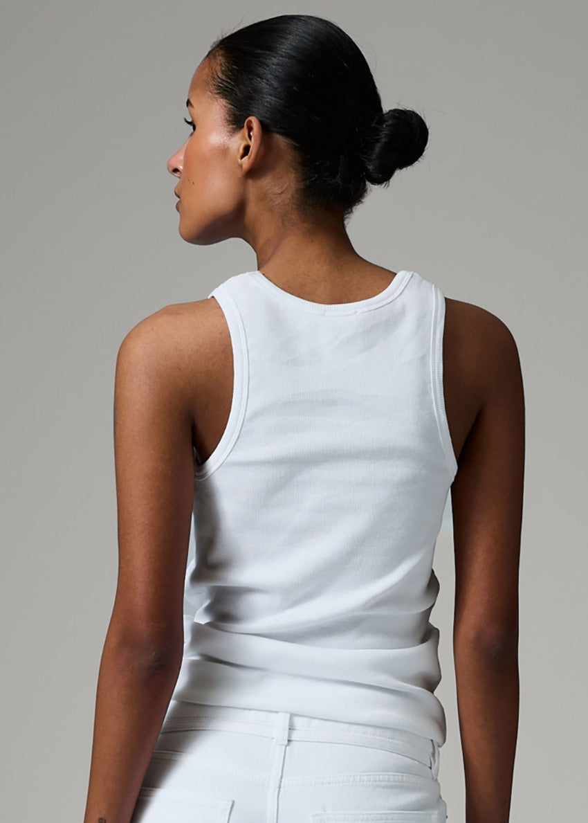 Pure, simple, timeless. The Camilo Classic Rib Tank is the foundation piece every wardrobe needs. Crafted in a premium ribbed fabric, this bright white tank features a flattering scoop neckline and subtle embossed logo detail.