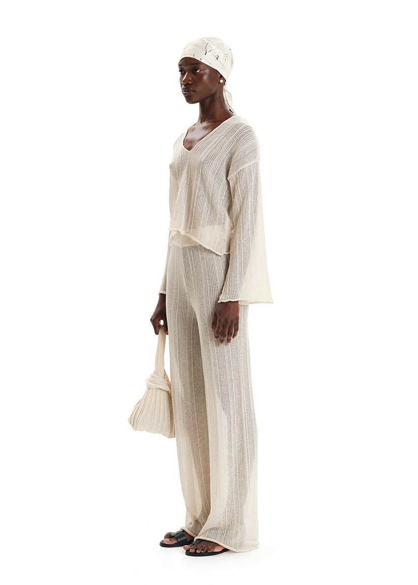 A stunning blend of elegance and modernity. Available in classic black and chic ecru, this top features a shimmering finish that captures the light beautifully. Perfect for both day and night, its versatile design makes it a staple in any fashion-forward wardrobe.